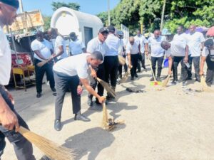 The Assistant Inspector-General of Police in charge of the FCID Annex, Alagbon, Lagos AIG Simeon U. Akpanudom psc fdc _mspsp_ MNIM. led officers of the Department during the sanitation exercise. He noted that the activities form part of the ongoing efforts of the Nigeria Police Force to deepen community engagement and reinforce the spirit of service in line with the objectives of the Police Day celebration.