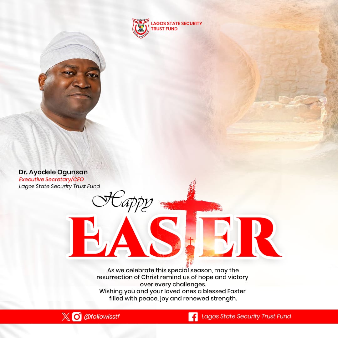 The Executive Secretary/CEO of the Lagos State Security Trust Fund (LSSTF), Dr. Ayodele Ogunsan, has extended warm Easter greetings to Christians in Lagos State and across Nigeria, calling for reflection on the profound sacrifice of Jesus Christ and renewed commitment to service, compassion, and nation-building.