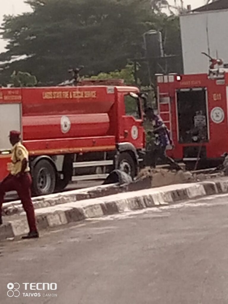 LASTMA, LAGOS FIRE SERVICE PROMPTLY THWART IMPENDING INFERNO FOLLOWING DIESEL TANKER MISHAP ON LIVERPOOL BRIDGE, MILE 2 CORRIDOR, APAPA.